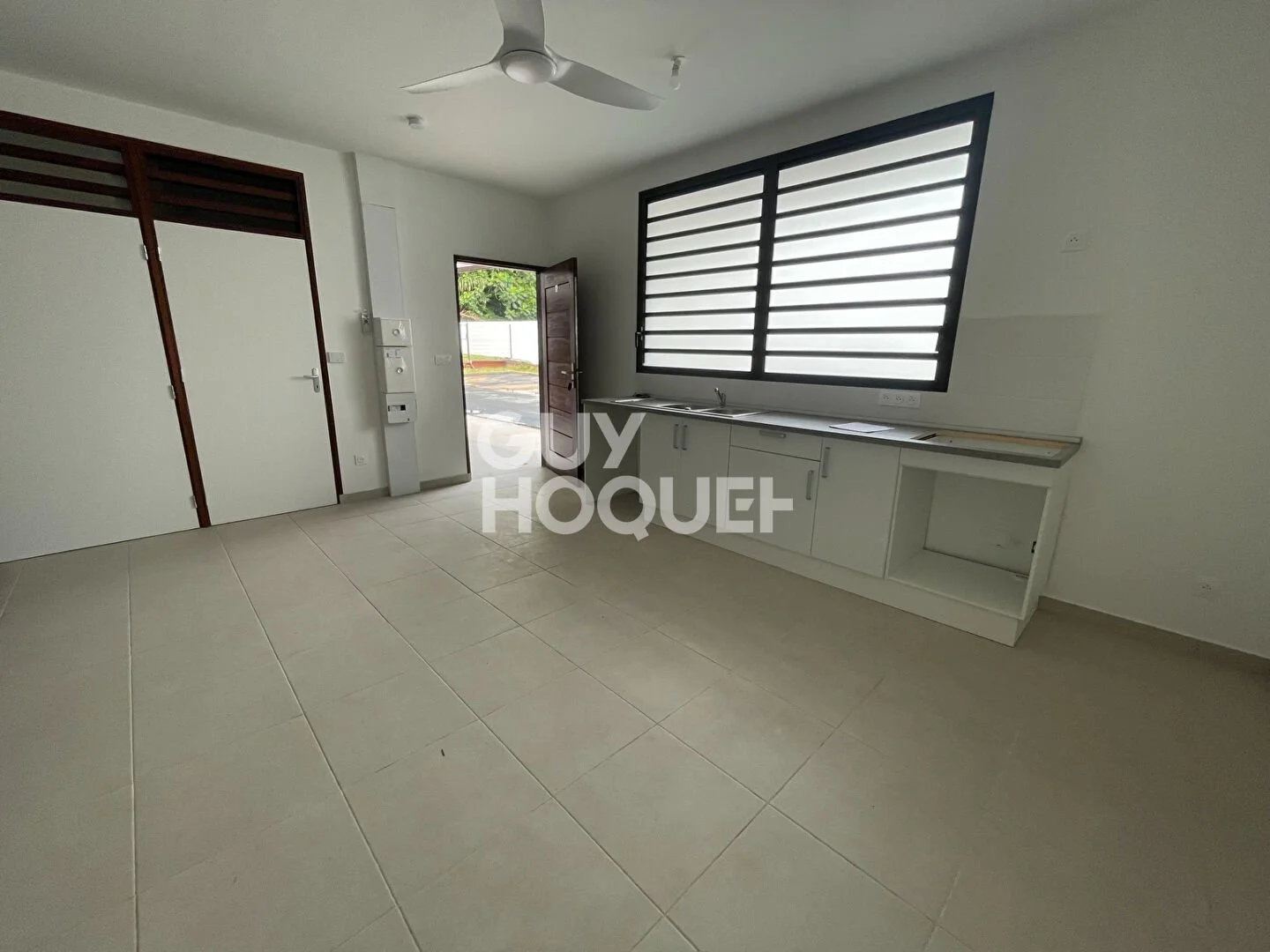 Un studio en RDC comprenant : un séjour, une cuisine, un cellier, une salle d'eau avec WC attenant, une terrasse et un jardin. Situé dans la périphérie de Cayenne dans une résidence neuve.